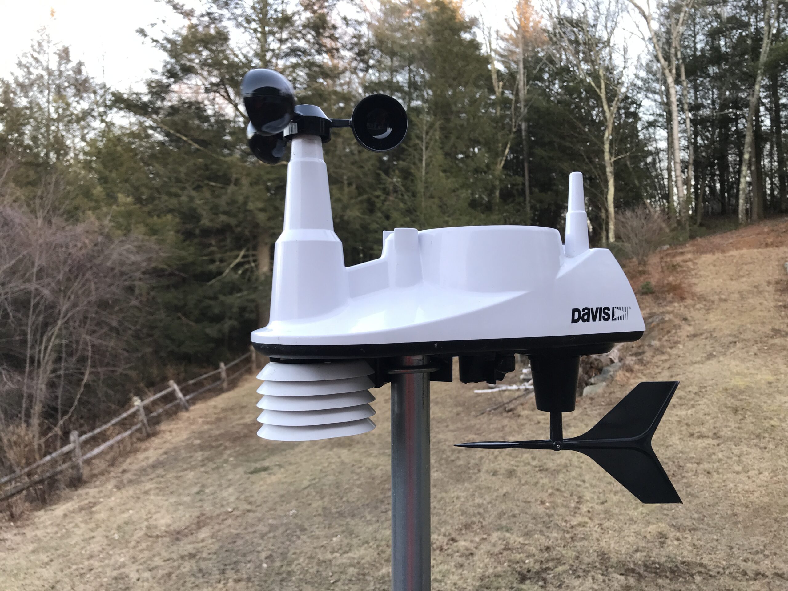 Once settling on an acquisition device, I moved on to the sensor suite. This is the piece of hardware that lives outside and actually does the leg work. I went with the Davis Weather Station 06357. This setup comes with a temperature and humidity sensor, a wind speed (anemometer) and direction vane. These sensor report back to the WeatherBridge Pro over RF at 915MHz. The unit boasts a 1000′ distance, but I have found anything further then a few hundred feet is the limit. This could be a limitation of the WeatherBridge Pro or the Davis ISS. This is a fairly basic setup, which, for what I am doing, is perfectly acceptable. I picked up the mounting hardware as well.